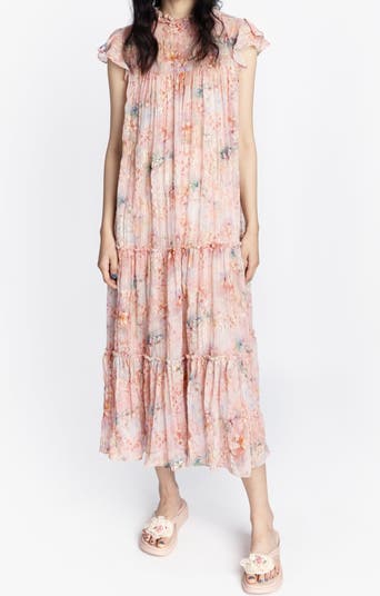 Float through the day in the Anna Sui Oasis Blooms Tiered Maxi Dress, the definition of effortless elegance. Designed with a light, airy silhouette, this flowy maxi drapes beautifully over the body, enhanced by a softly crinkled texture that moves with ease. Delicate metallic threading is woven throughout the fabric, subtly catching the light for a luminous, ethereal finish. Tiered layers add gentle volume and movement, making this dress perfect for warm-weather days, garden parties, or sunset evenings when you want to feel effortlessly enchanting.