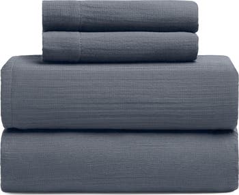 Crane Air Oasis Crinkled Cotton Gauze 4-Piece Sheet Set, Alternate, color, Midnight Tide