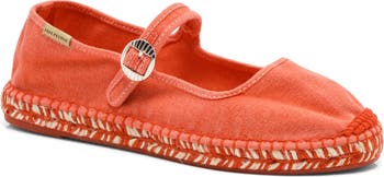 The retro charm of a mary jane meets the resort-ready flair of an espadrille with this durable canvas flat trimmed with artisanal blanket stitching.