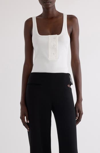 An off-center placket and '90s-inspired ribbing elevate a capsule-essential tank from Nicolas Di Felice's revival of the cult ‘60s brand.