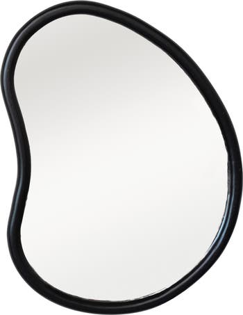 - A stylish and modern wall mirror that features an oblong shape and a mango wood frame