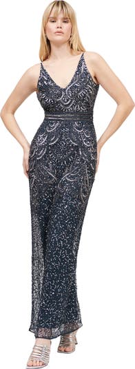 Gorgeous embellished maxi dress in navy color from our collection SS 2025. The stunning hand embellishments and beading will have all eyes on you and you sparkle all night long. Perfect for Prom, a black tie event or any special evening occasion.
