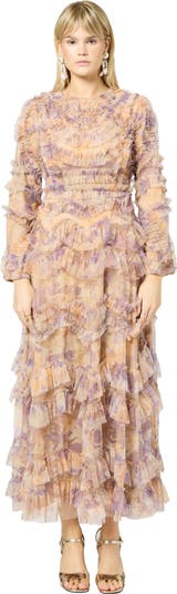 Be the belle of the ball this season in this flawless round neck ruffle modest maxi dress by MARYISA. A style that is sure to be a top pick for bridesmaids, wedding guests, prom, and black-tie events, with its Sequined teamed with a round neck and floaty skirt, this multicolor number is hands down a winner for this occasion season.