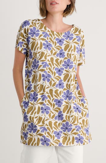 Organic-cotton jersey means comfort in a tunic-length T-shirt featuring a contemporary floral print.