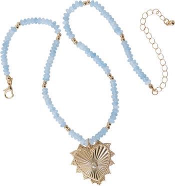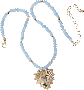Amazonite stone necklace with gold beads and our Love and Luck Signature Heart.