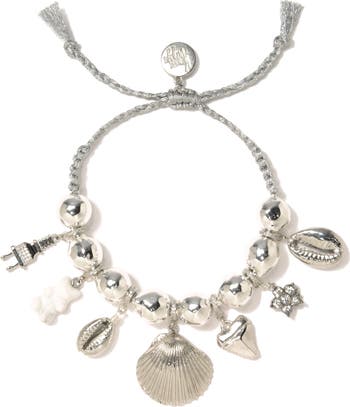 Make a splash with our Ocean Oasis bracelet. Threaded with metallic silver and accented by lustrous pearls, sparkling rhinestones, and playful shell charms, this bracelet is made for those who love to frolic on the beach (or just look like they do!).