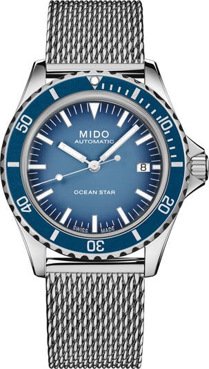 Paying tribute to the Ocean Star diving collection from the '60s, this Swiss-automatic watch boasts the same reliable water resistance for modern divers. The accurate timepiece features the revolutionary Nivachron™ balance-spring for precision timekeeping and bright hands and indexes for easy-to-read legibility. The interchangeable stainless steel bracelet and textured rubber strap let you switch up how you wear this timepiece.