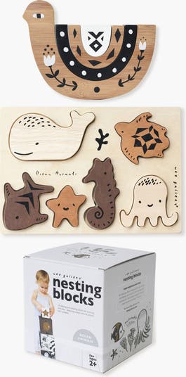 • Includes Ocean Animals Nesting Blocks, Ocean Animals Wooden Tray Puzzle, Bird Wooden Nesting Toy