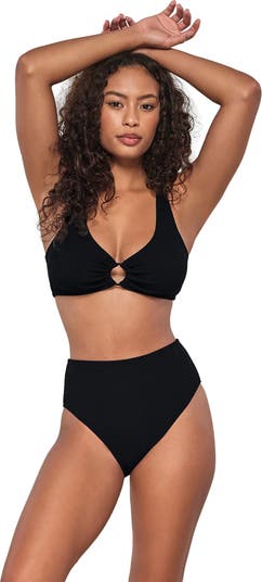 There's nothing better for your beachside adventures than the Oceana Top! Featuring a shirred O-ring front that's flattering and flirty, with a splash of support. This top has a hook back closure, adjustable straps, a J-hook, and removable cups for your comfort.