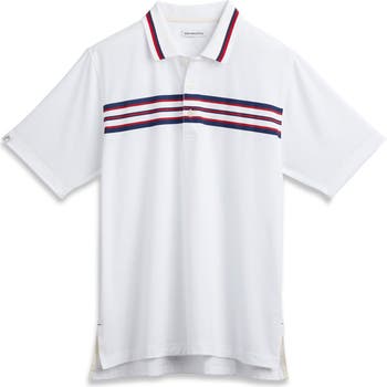 This golf polo looks cool and feels cool with old-school stripes in our exclusive Dry Release fabric, the unique fabric blend feels like pure cotton, but provides all day performance attributes golfers rely on for feeling their best in the sun and in motion. This easy care fabric delivers moisture wicking, four-way stretch, and UV protection.