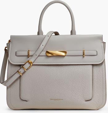 This classic satchel by Donna Karan is crafted with leather and features pockets inside and out with a sleek look