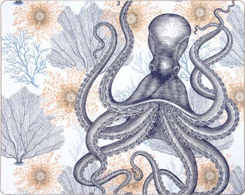 With a detailed octopus motif and stunning coral design, the Ochre Octopus hardboard placemat brings your home a little marine magic. This placemat is easy to wipe clean and looks great in your coastal or nautical kitchen.