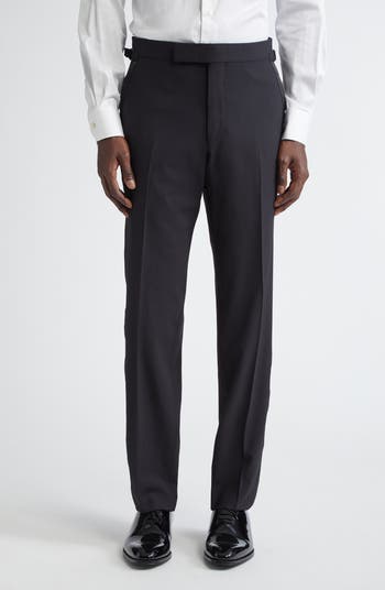 A sumptuous choice for formal wear, this classically styled black tuxedo with satin accents is impeccably tailored in Italy from stretch-enhanced wool.