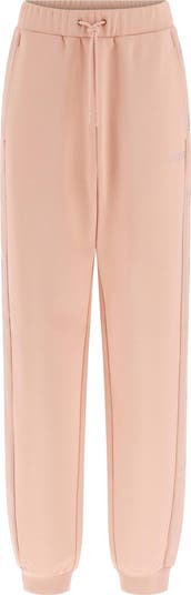 These cozy drawstring-waist joggers feature glittery side panels striped with rhinestones for a bit of bling with your casual looks.