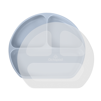 Are mealtime messes a constant challenge for you? The Octopod® silicone triangle plate is the perfect solution. With these eco-friendly divided plates with lids, your little one will be more curious about exploring new tastes and textures instead of using their dish as a toy. The thoughtful design of dividers keeps different foods separate, making it easy for both you and your little one to enjoy meals. Plus, our baby plates and bowls are dishwasher and microwave-safe to ensure clean-up is a breeze!\nNon-toxic and Safe: Crafted from 100% food-safe silicone, this divided plate with a lid (microwavable) ensures that harmful chemicals don’t mix with your child’s meals.\nVersatile Use: Our plates and lids are suitable for the dishwasher, microwave, and oven, making meal preparation and clean-up incredibly convenient!\nLids: Built with a practical and convenient lid, \nOctopod® suction-divided plates can readily preserve your child’s leftovers, snacks, and prepared meals\nReliable Suction: The Octopod® divided plates with lids are engineered to remain securely attached to your child’s high chair tray. If the suction ever fails, we’ll take care of it hassle-free!\nSmart Sections: With individual compartments, our divided plates with lids make it easy for toddlers to eat various foods without mixing flavors. They're also ideal for storing snacks or leftovers on the go.
