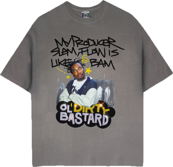 Limited Edition Cross Colours x ol' Dirty Bastard T Shirt embellished with custom crystal appliqués. Woven label sewn at the back. A Vintage oversized boxy fit; For a more fitted look, order one size smaller than usual
