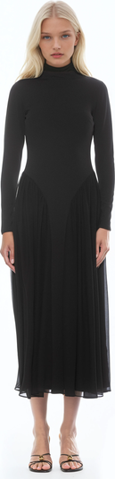 The Odette Mockneck Long Sleeve Midi Shirred Dress Is A Must Have. This Dress Features Long Sleeves, Dropped Waist Detail, Shirring At Waist, And Midi Length. This Dress Fits True To Size.