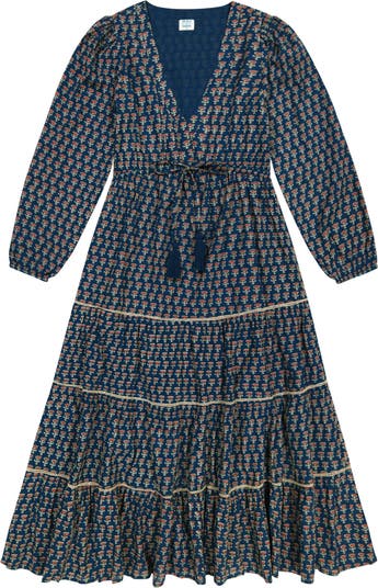 Effortless day into evening glamour never looked so gorgeous as in our Odette dress with its plunging V neck, curved empire seam with tassel detailing and full tiered skirt.