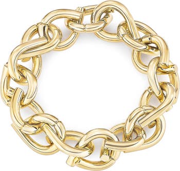 Sculptural and tubular links of 18-karat gold embolden the glow of this Italian-crafted chain bracelet.