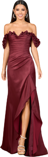 LARA New York Off Shoulder Crepe Gown, Alternate, color, Burgandy