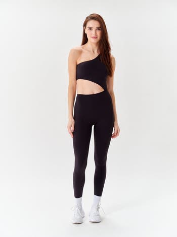 - One-shoulder jumpsuit with an asymmetrical neckline