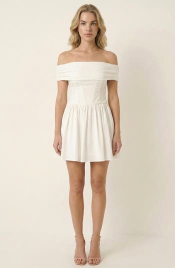 Elegant and feminine, this off-shoulder mini dress features a ruched bodice that accentuates the waist while offering a flattering, structured fit. The draped neckline creates a romantic silhouette, complementing the flowy skirt that moves effortlessly with every step. Designed for both comfort and sophistication, this dress is perfect for special occasions, date nights, or summer soirées. Pair it with strappy heels and delicate jewelry for an effortlessly chic look.