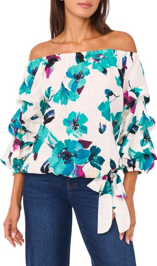 Vince Camuto Off the Shoulder Bubble Sleeve Top, Alternate, color, Jungle