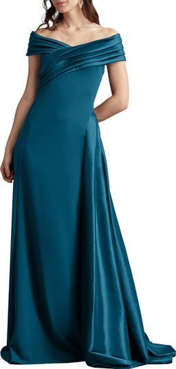 Off the Shoulder Crepe & Taffeta Gown