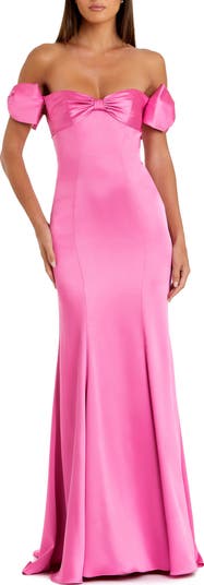 Off The Shoulder Statement Bow Satin Mermaid Gown