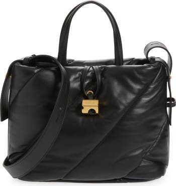 Logo-marked hardware reflects the brand's industrial influences on this quilted tote made of supple leather and designed with a removable shoulder strap.