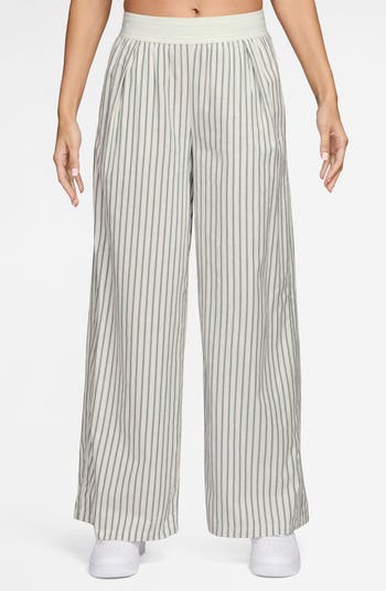 A logo-jacquard waistband tops these airy pants made of crisp cotton poplin and patterned in vertical stripes.