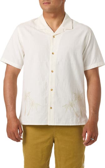 Subtle palm trees take the lead on this textured cotton camp shirt that's light on the body and big on impact. Breathable and comfortable, it’s made for sunny invitations and spontaneous plans.