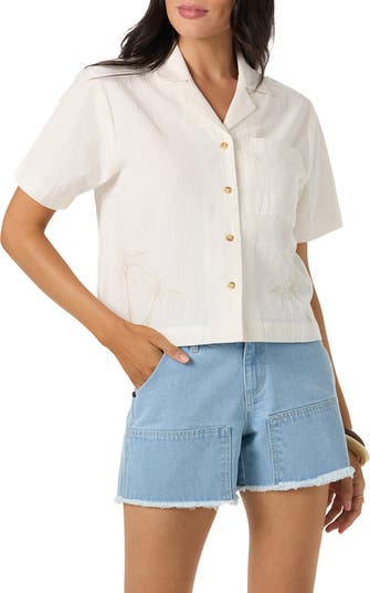 A buttoned placket, chest pocket and notched collar bring casual coolness to a resort-ready shirt cut from pure, lightweight cotton.