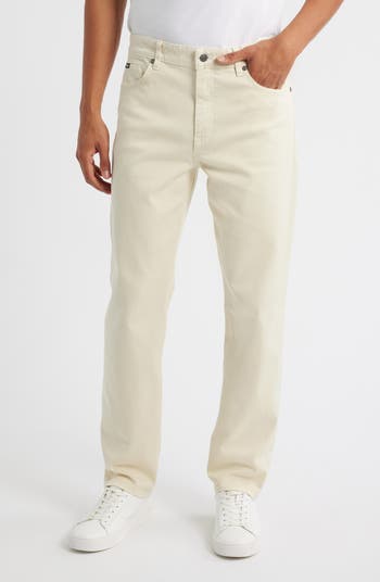 A hint of stretch lends day-one comfort to these denim jeans featuring a logo-adorned patch at the pocket.