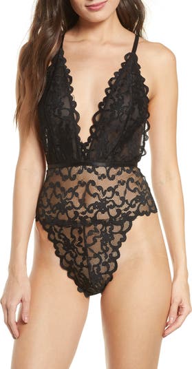 With a strappy back and perfectly placed galloon lace, this cheeky teddy is the ideal invitation (or RSVP).