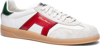 Pebbled, polished and popping with color, this low-top sneaker wrapped in leather and suede sports a classic lace-to-toe profile and a sole of caramel-colored gum rubber. Wear it to kick up an everyday look or add personality to an elevated-casual event.