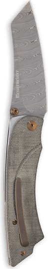 Channel the rugged beauty of its mountain town namesake with the Messermeister Ojai Folder, a limited-edition everyday carry knife built for adventure and style. Handcrafted in Italy, it features a Damasteel® SuperDense Twist Damascus blade with a ballistic clip point, a thick spine for strength, and a razor-sharp 16° edge. Messermeister’s signature offset frame and bronze titanium double-sided thumb stud make for smooth, ambidextrous deployment, secured by a rock-solid liner lock. The ultra-tough raw canvas Micarta handle offers a confident grip, accented by bronzed titanium hardware and a sturdy pocket clip. Finished with a vintage leather sheath made in the Netherlands, this folder blends heritage craftsmanship with modern performance. 100% Messermeister quality, built for a lifetime of stories. Our Italian-made knife features Messermeister’s iconic off-set frame and smooth opening blade which can be quickly deployed with either hand using the double-sided thumb stud. The liner lock mechanism automatically engages when fully open. Worn canvas Micarta handle scales are fastened by Bronzed Titanium hardware and pocket clip. The limited edition knife is made from Damasteel SuperDense Twist Damascus and it comes in a vintage leather sheath.