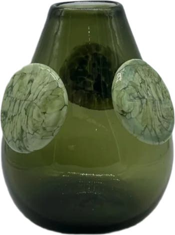 The Ojo de Liebre vase is made using recycled glass by artisans in Guadalajara Mexico. Forest Green Colors. Holds Water.