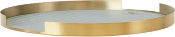 The coloured silicone mat brings a stylish element to the otherwise classic and simple tray, making the Oka Tray both practical and beautiful. The tray is made of brass plated metal, and the mat is made of printed silicone. For cleaning it is recommended to wipe with a wet cloth.