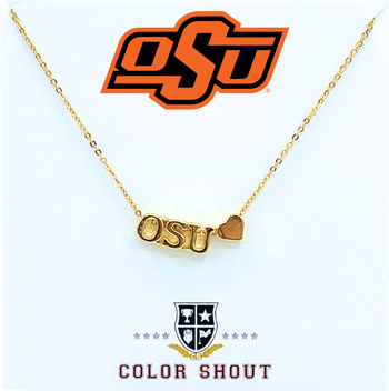 Color Shout Oklahoma State University Gold HeartNecklace, Main, color, Yellow Gold