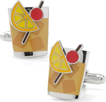 Take your favorite drink wherever you go with this set of cuff links in the design of an Old Fashioned.