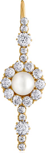 Old Mine Cultured Pearl & Diamond Single Linear Drop Earring