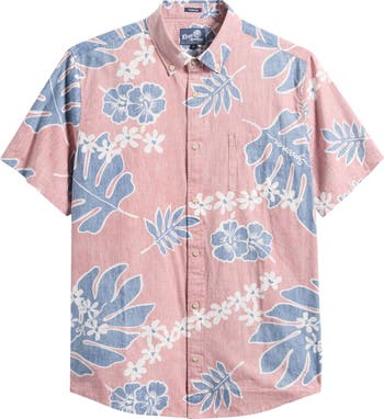 Old School Floral Short Sleeve Button-Down Cotton Sport Shirt