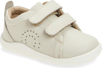 Perforations give a breathable finish to this shiny leather sneaker built for new walkers.