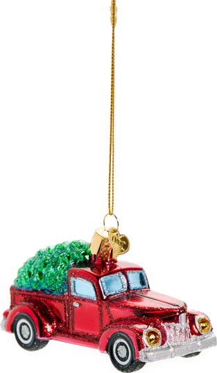 Bring an element of nostalgia to your Christmas tree with this glass ornament that's mouth-blown and handpainted like a trusty ol' pickup.