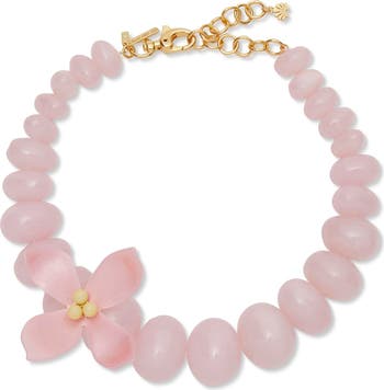Our Oleander collar necklace features a soft floral touch for added charm.