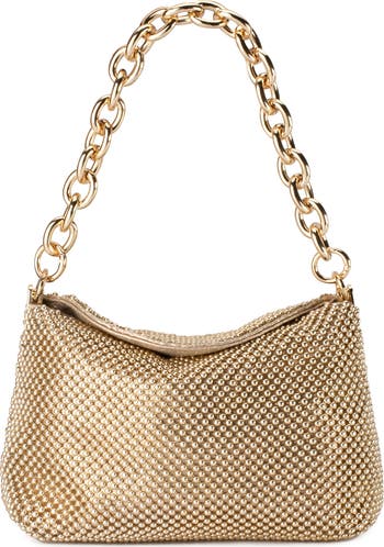 Lustrous chain mesh amplifies the glamorous allure of a slouchy shoulder bag fitted with optional chain straps for hands-free carry on your next evening out.