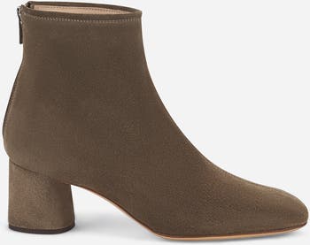 Bootie made entirely of water-resistant velour, which also covers the cylindrical heel. A timeless and minimalistic creation design that is both original and elegant, matching any outfit.