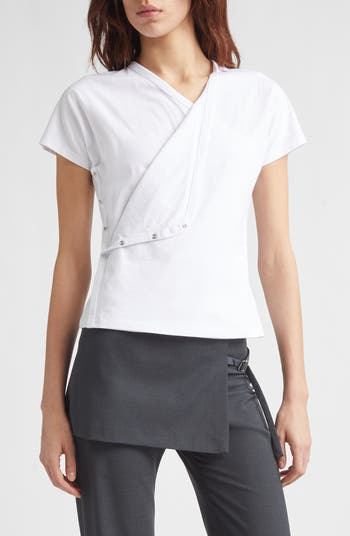 This wardrobe-essential top is cut from organic-cotton jersey and fashioned with side snaps that can be adjusted to your liking. Smooth dolman sleeves create a streamlined silhouette on this crossover V-neck T-shirt.