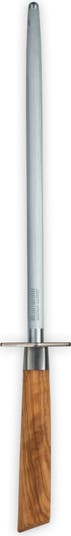 Sharp knives are safe knives, and the Oliva Elite 10” Fine Grit Steel is your key to lasting performance. Ideal for maintaining a razor-sharp edge between sharpenings, this honing rod realigns your blade with every pass. Crafted in Germany and finished with a beautifully contoured olive wood handle, it pairs utility with elegance. A must-have for anyone serious about knife care.